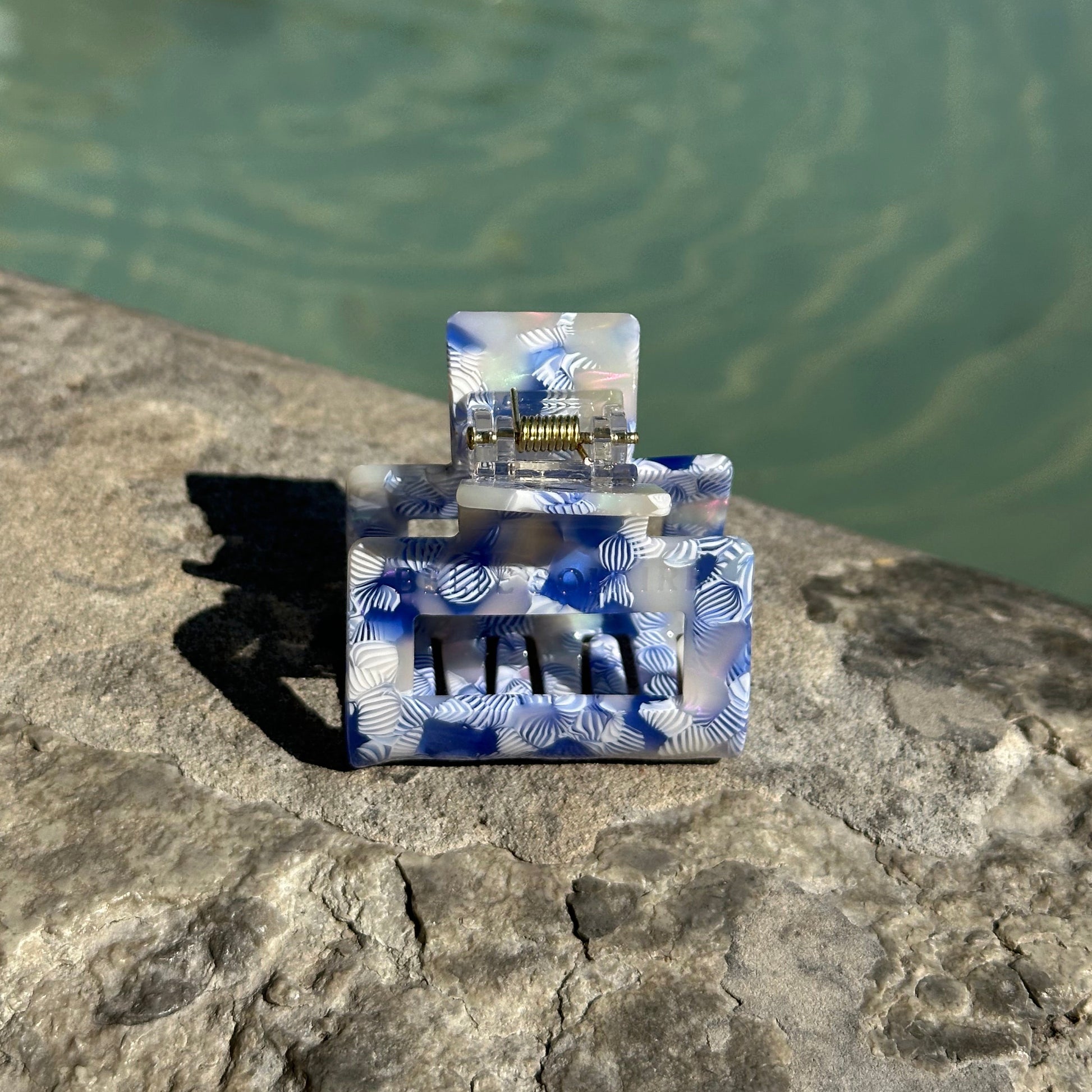 Indigo Bloom: A delicate mix of soft white and deep indigo, this clip evokes the grace of flower petals caught in a summer breeze. Lightweight, strong, and endlessly chic — your go-to for effortless everyday style.
